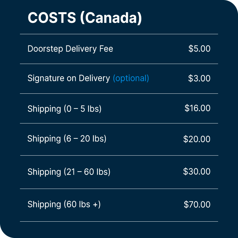All Doorstep Delivery orders will receive a processing fee of $5. This fee is applied to each order. An order can contain as many items as desired but cannot contain multiple delivery addresses.